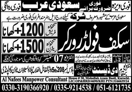 Scaffolder Worker Jobs 2025 In Saudi Arabia announce the Contract career opportunities for the post of See Below Ad in Saudi Arabia for the fresh and experienced candidates on Contract basis who have Check Advertisement degree. Posted date of this post is 02/09/2025 and the last date is 07/09/2025. if you are eligible for this job apply before due date.