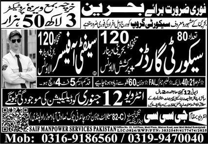Security Guard And Safety Officer Jobs In Bahrin 2026 announce the Contract career opportunities for the post of See Below Ad in Bahrain for the fresh and experienced candidates on Contract basis who have Check Advertisement degree. Posted date of this post is 11/01/2026 and the last date is 12/01/2026. if you are eligible for this job apply before due date.