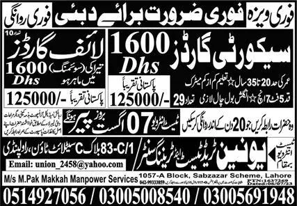Security Guard & Life Security Guard Jobs 2023 In Dubai announce the Contract career opportunities for the post of See Below Ad in Dubai for the fresh and experienced candidates on Contract basis who have Check Advertisement degree. Posted date of this post is 05/08/2023 and the last date is 07/08/2023. if you are eligible for this job apply before due date.