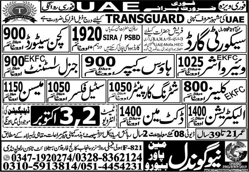 Security Guard & Mason Jobs In UAE 2025 announce the Contract career opportunities for the post of See Below Ad in United Arab Emirates for the fresh and experienced candidates on Contract basis who have Check Advertisement degree. Posted date of this post is 28/09/2025 and the last date is 03/10/2025. if you are eligible for this job apply before due date.