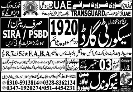 Security Guards Jobs Career Opportunity In UAE 2025 announce the Contract career opportunities for the post of See Below Ad in United Arab Emirates for the fresh and experienced candidates on Contract basis who have Check Advertisement degree. Posted date of this post is 02/09/2025 and the last date is 03/09/2025. if you are eligible for this job apply before due date.