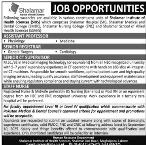 Shalamar Institute of Health Sciences Lahore Jobs 2025 announce the Contract career opportunities for the post of See Below Ad in Punjab, Lahore for the fresh and experienced candidates on Contract basis who have Check Advertisement degree. Posted date of this post is 31/08/2025 and the last date is 10/09/2025. if you are eligible for this job apply before due date.