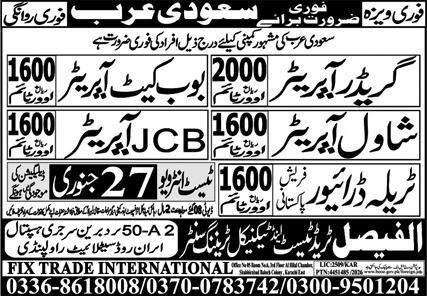 Shawl Operator & Grader Operator Jobs 2026 In Saudi Arabia announce the Contract career opportunities for the post of See Below Ad in Saudi Arabia for the fresh and experienced candidates on Contract basis who have Check Advertisement degree. Posted date of this post is 23/01/2026 and the last date is 27/01/2026. if you are eligible for this job apply before due date.