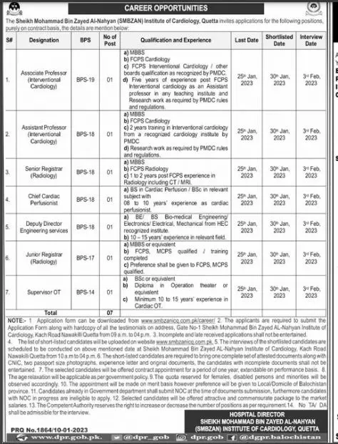 - Sheikh Muhammad Bin Zayed Al-Nahyan Institute of Cardiology is looking to hire Associate Professor, Assistant Professor, Senior Registrar, Chief Cardiac Perfusionist, Deputy Director, Junior Registrar, and Supervisor OT.