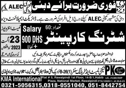 Shuttering Carpenter Jobs In Dubai 2023 announce the Contract career opportunities for the post of See Below Ad in Dubai for the fresh and experienced candidates on Contract basis who have Check Advertisement degree. Posted date of this post is 19/08/2023 and the last date is 23/08/2023. if you are eligible for this job apply before due date.