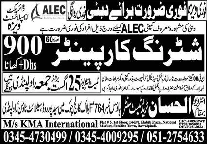 shuttering carpenter Jobs in Dubai 2023 announce the Contract career opportunities for the post of See Below Ad in Dubai for the fresh and experienced candidates on Contract basis who have Check Advertisement degree. Posted date of this post is 20/08/2023 and the last date is 25/08/2023. if you are eligible for this job apply before due date.