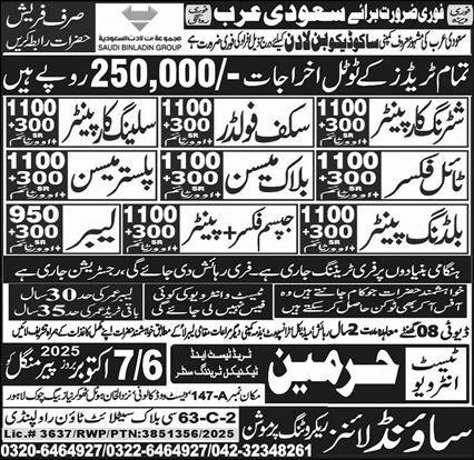 Shuttring Carpanter And Labour Jobs in Saudia Arabia 2025 announce the Contract career opportunities for the post of See Below Ad in Saudi Arabia for the fresh and experienced candidates on Contract basis who have Check Advertisement degree. Posted date of this post is 05/10/2025 and the last date is 07/10/2025. if you are eligible for this job apply before due date.