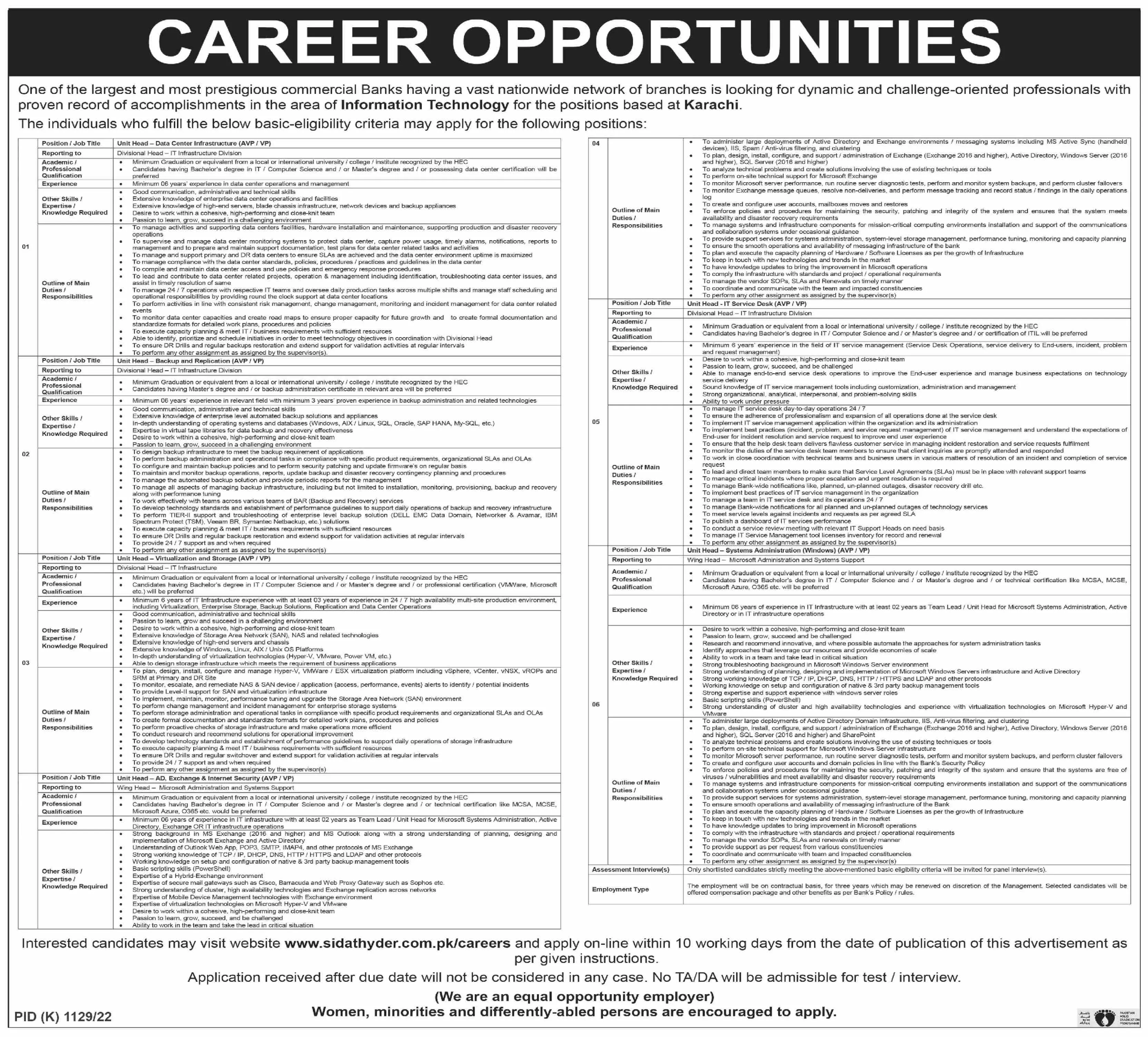Sidat Hyder Morshed Associates jobs 2022 announce the Contract career opportunities for the post of See Below Ad in Sindh, Karachi for the fresh and experienced candidates on Contract basis who have Check Advertisement degree. Posted date of this post is 27/10/2022 and the last date is 06/11/2022. if you are eligible for this job apply before due date.