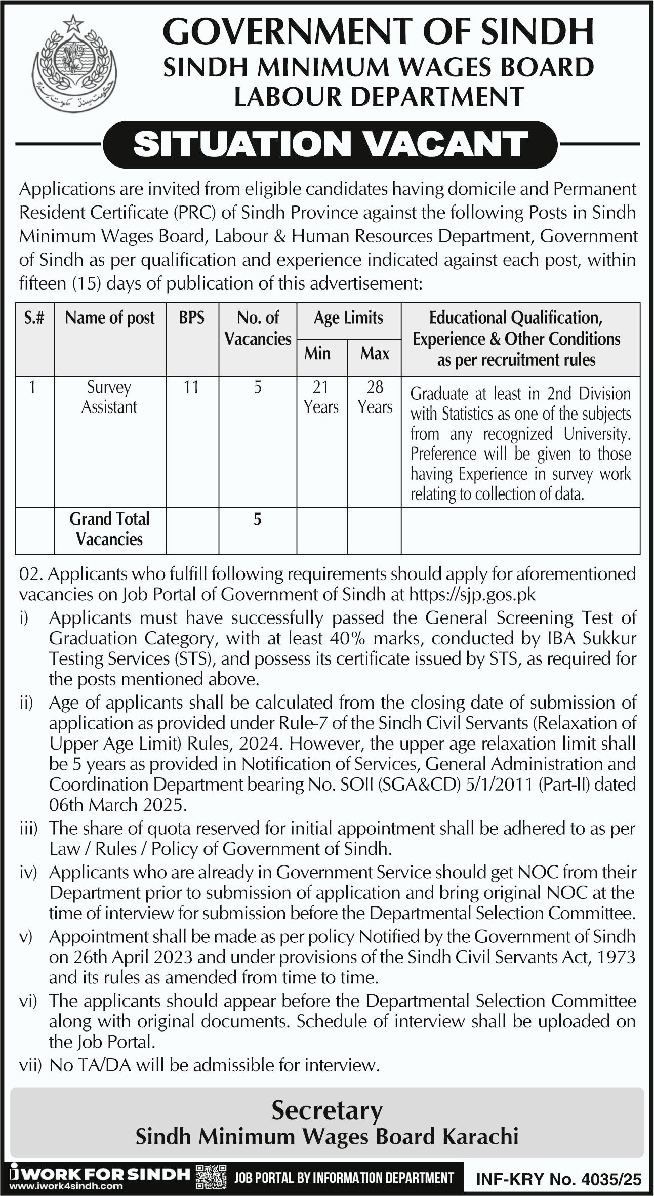 Sindh Minimum Wages Board Labour Department Jobs 2025 announce the Contract career opportunities for the post of See Below Ad in Sindh, Karachi for the fresh and experienced candidates on Contract basis who have Check Advertisement degree. Posted date of this post is 03/12/2025 and the last date is 17/12/2025. if you are eligible for this job apply before due date.
