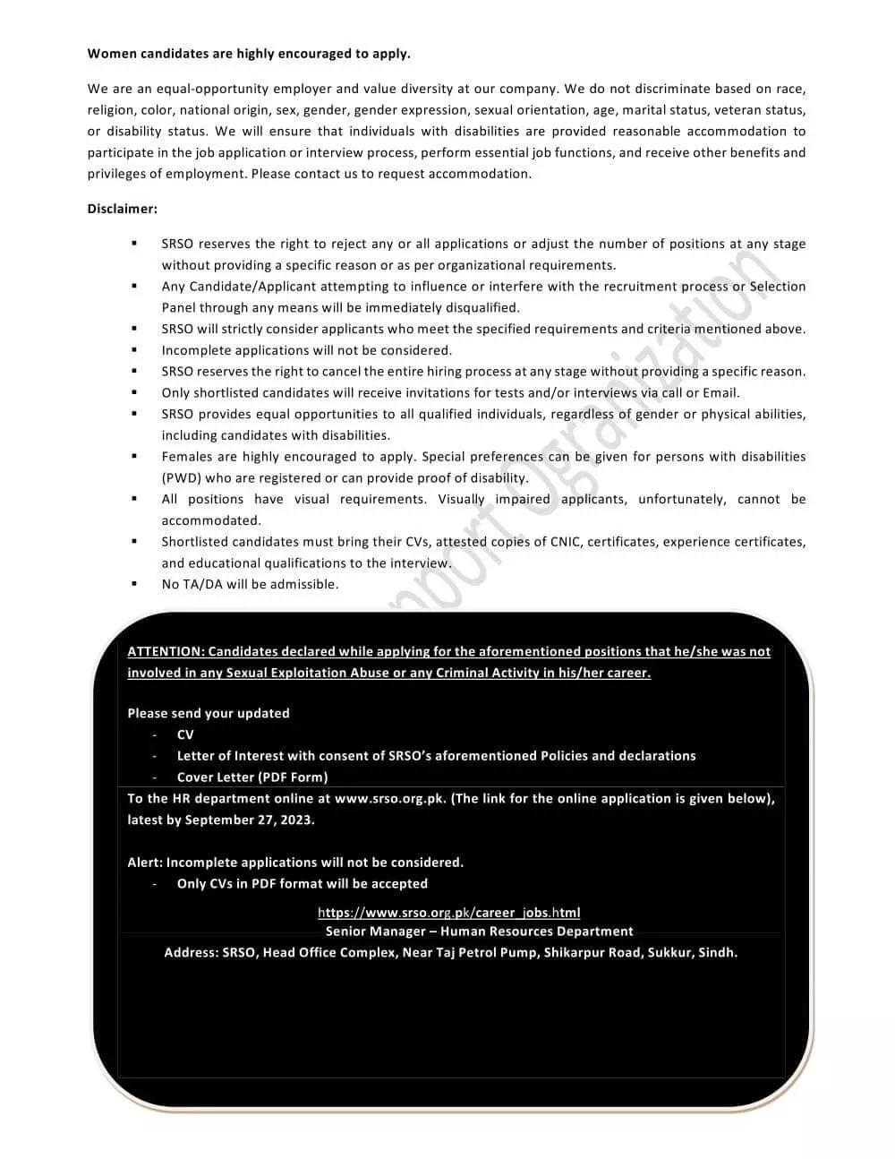 Sindh Rural Support Program SRSP Jobs 2023 announce the Contract career opportunities for the post of See Below Ad in Sindh, Karachi for the fresh and experienced candidates on Contract basis who have Check Advertisement degree. Posted date of this post is 29/09/2023 and the last date is 29/10/2023. if you are eligible for this job apply before due date.