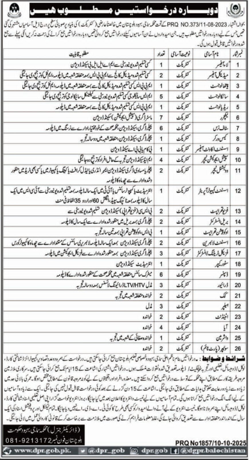 Population welfare Department Balochistan Jobs 2025 announce the Contract career opportunities for the post of See Below Ad in Balochistan, Quetta for the fresh and experienced candidates on Contract basis who have Check Advertisement degree. Posted date of this post is 11/10/2025 and the last date is 26/10/2025. if you are eligible for this job apply before due date.
