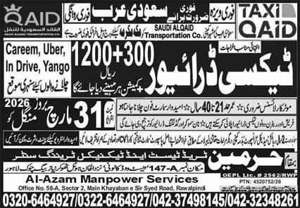 Taxi Driver Jobs in Saudia Arabia 2026 announce the Contract career opportunities for the post of See Below Ad in Saudi Arabia for the fresh and experienced candidates on Contract basis who have Check Advertisement degree. Posted date of this post is 29/03/2026 and the last date is 31/03/2026. if you are eligible for this job apply before due date.