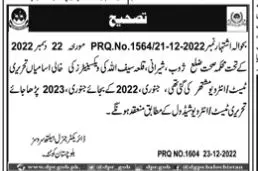Test & Interview Schedule of Health Services Jobs 2023 announce the Contract career opportunities for the post of See Below Ad in Balochistan,Quetta for the fresh and experienced candidates on Contract basis who have Check Advertisement degree. Posted date of this post is 24/12/2022 and the last date is 12/01/2023. if you are eligible for this job apply before due date.