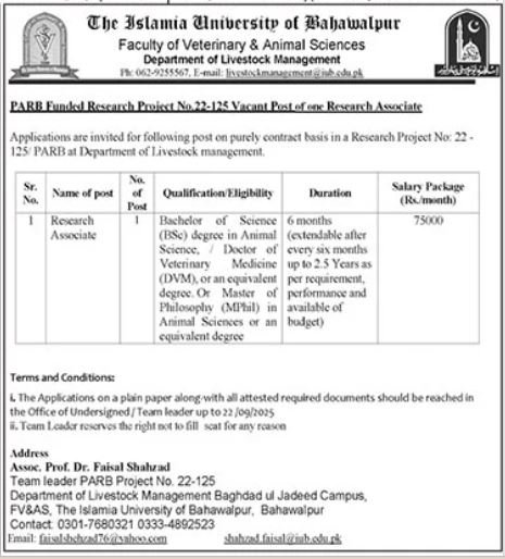 The Islamia University Of Bahawalpur Job 2025 announce the Contract career opportunities for the post of See Below Ad in Punjab, Bahawalpur for the fresh and experienced candidates on Contract basis who have Check Advertisement degree. Posted date of this post is 05/09/2025 and the last date is 22/09/2025. if you are eligible for this job apply before due date.
