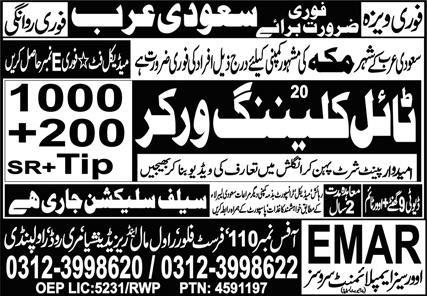 Tile Cleaner Worker Jobs 2026 In Saudi Arabia announce the Contract career opportunities for the post of See Below Ad in Saudi Arabia for the fresh and experienced candidates on Contract basis who have Check Advertisement degree. Posted date of this post is 03/04/2026 and the last date is 10/04/2026. if you are eligible for this job apply before due date.