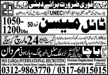 Tile Mason Jobs in Dubai 2023 announce the Contract career opportunities for the post of See Below Ad in Dubai for the fresh and experienced candidates on Contract basis who have Check Advertisement degree. Posted date of this post is 22/03/2023 and the last date is 24/03/2023. if you are eligible for this job apply before due date.