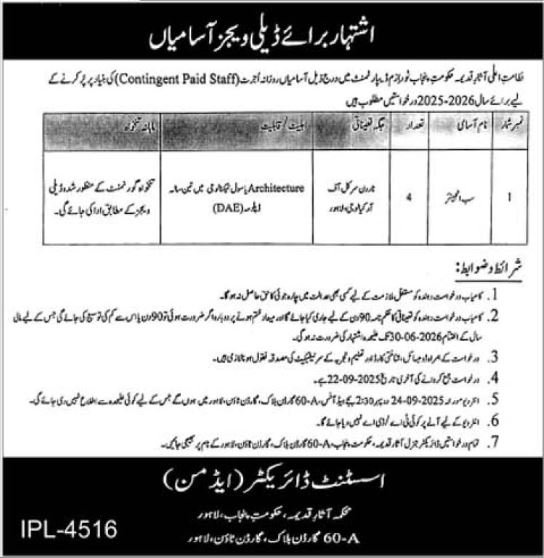The Government of Punjab, Department of Archeology and Tourism, invites applications for the following daily wage (Contingent Paid Staff) positions for the year 2025-2026:
