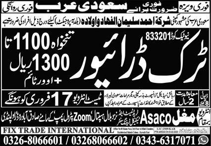 Truck Driver Jobs Open In Saudi Arabia 2026 announce the Contract career opportunities for the post of See Below Ad in Saudi Arabia for the fresh and experienced candidates on Contract basis who have Check Advertisement degree. Posted date of this post is 12/02/2026 and the last date is 17/02/2026. if you are eligible for this job apply before due date.