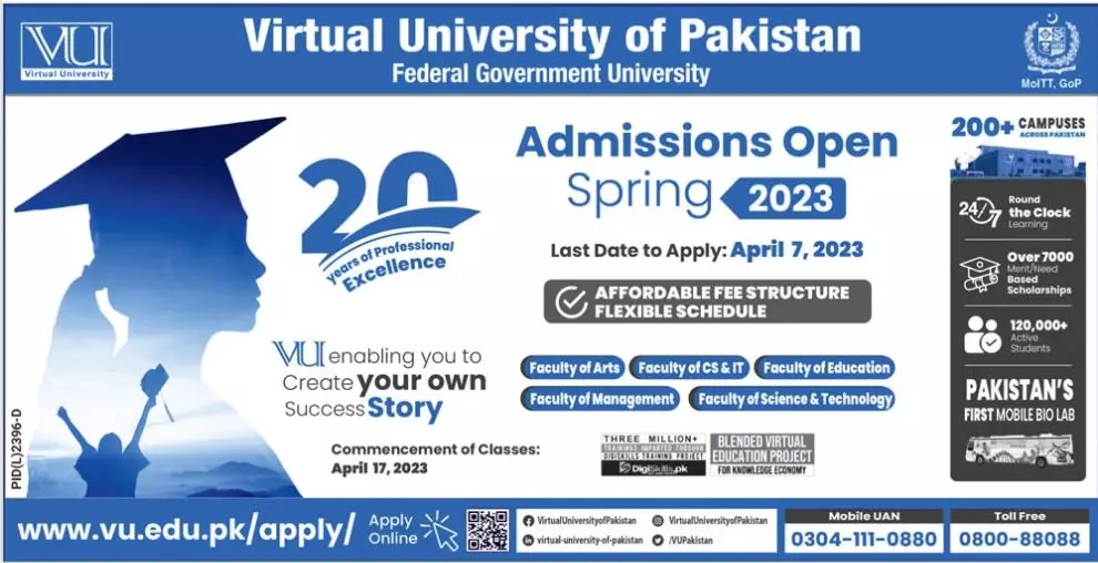 Virtual University of Pakistan Admissions 2022 announce the Contract career opportunities for the post of See Below Ad in Punjab, Lahore for the fresh and experienced candidates on Contract basis who have Check Advertisement degree. Posted date of this post is 15/02/2023 and the last date is 07/04/2023. if you are eligible for this job apply before due date.