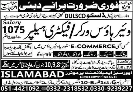 Warehouse Worker & Factory Helper Jobs 2023 In Dubai announce the Contract career opportunities for the post of See Below Ad in Dubai for the fresh and experienced candidates on Contract basis who have Check Advertisement degree. Posted date of this post is 06/06/2023 and the last date is 10/06/2023. if you are eligible for this job apply before due date.