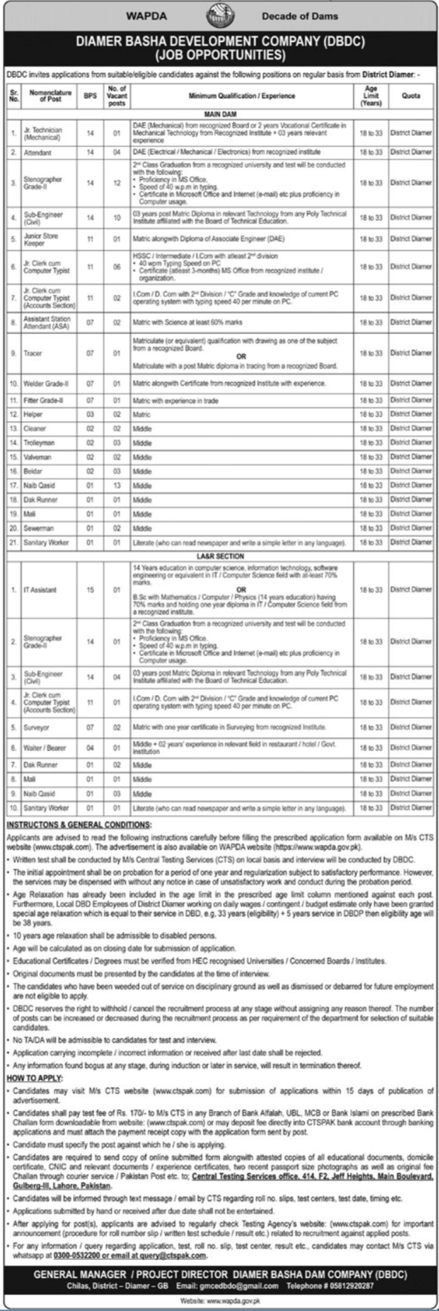 Water And Power Development Authority WAPDA Chilas Jobs 2026 announce the Contract career opportunities for the post of See Below Ad in Gilgit Baltistan for the fresh and experienced candidates on Contract basis who have Check Advertisement degree. Posted date of this post is 24/04/2026 and the last date is 08/05/2026. if you are eligible for this job apply before due date.