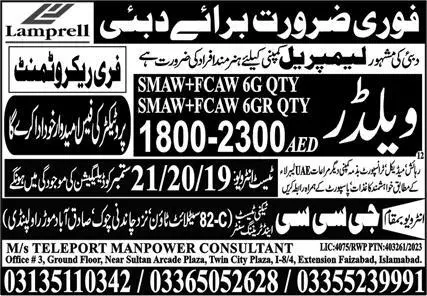 Welder Jobs in Dubai 2023 announce the Contract career opportunities for the post of See Below Ad in Dubai for the fresh and experienced candidates on Contract basis who have Check Advertisement degree. Posted date of this post is 16/09/2023 and the last date is 21/09/2023. if you are eligible for this job apply before due date.