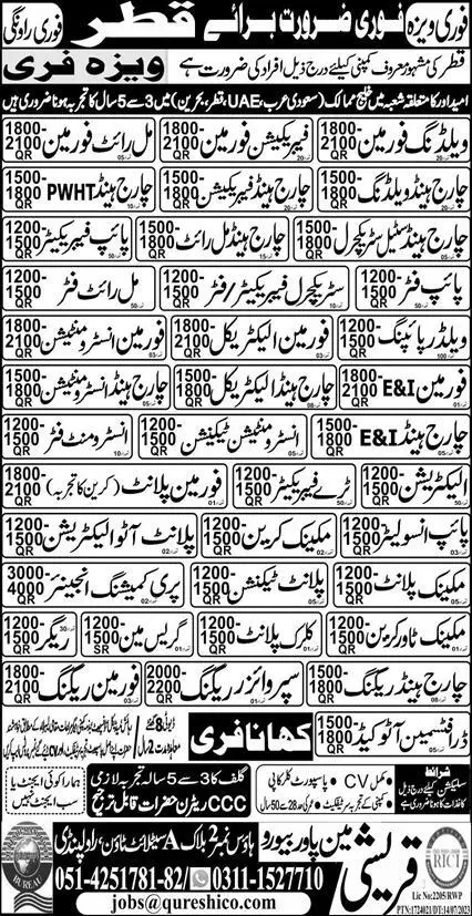 Welding Foreman And Foreman Electrical Jobs In Qatar 2023 announce the Contract career opportunities for the post of See Below Ad in Qatar for the fresh and experienced candidates on Contract basis who have Check Advertisement degree. Posted date of this post is 16/07/2023 and the last date is 16/08/2023. if you are eligible for this job apply before due date.