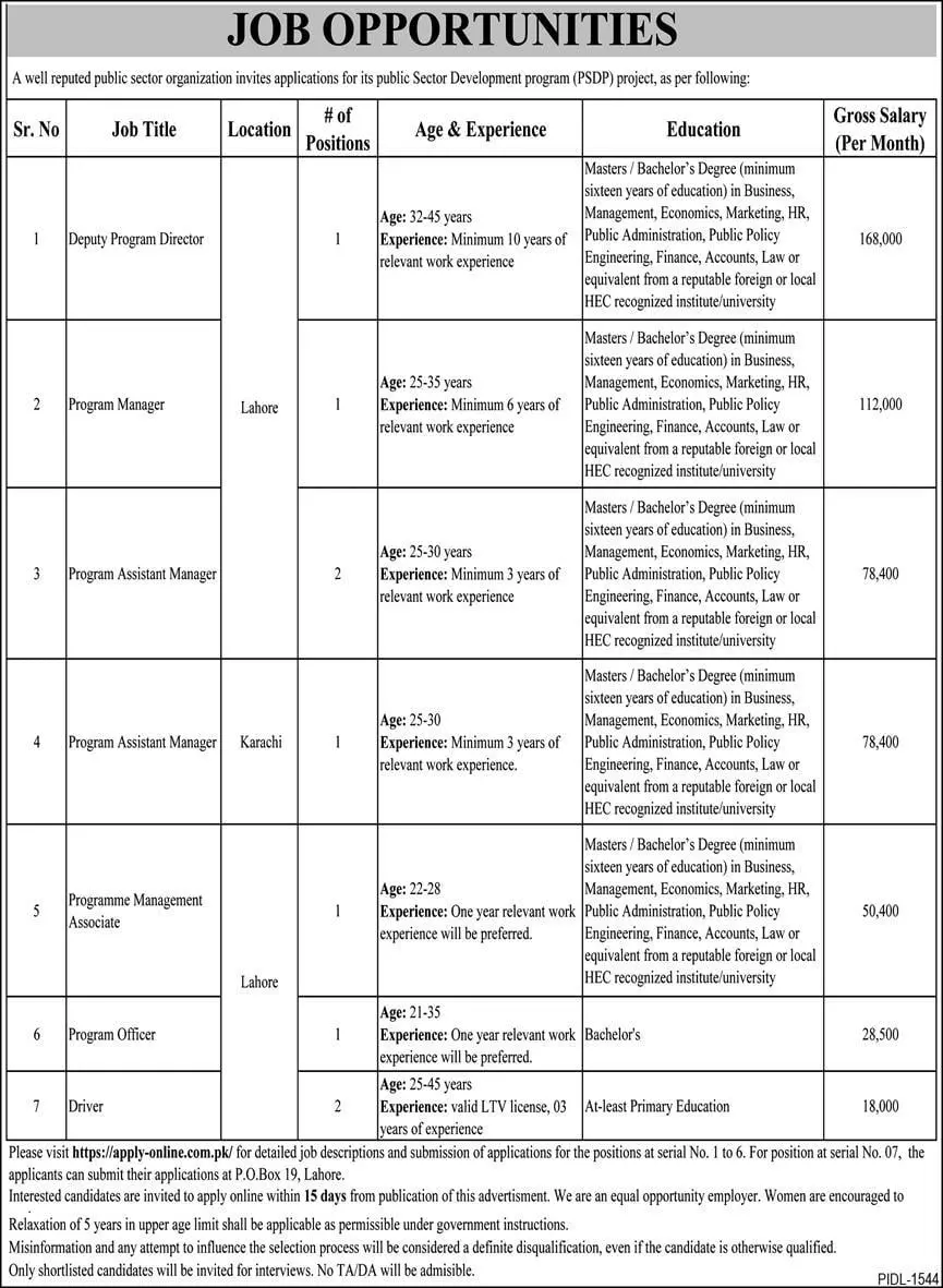 Well Republic Sector Organization (PSDP) Lahore Jobs announce the Contract career opportunities for the post of See Below Ad in Punjab,Lahore for the fresh and experienced candidates on Contract basis who have Check Advertisement degree. Posted date of this post is 29/11/2021 and the last date is 14/12/2021. if you are eligible for this job apply before due date.